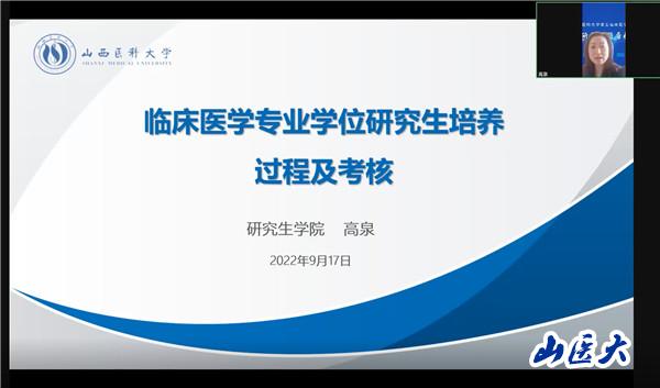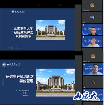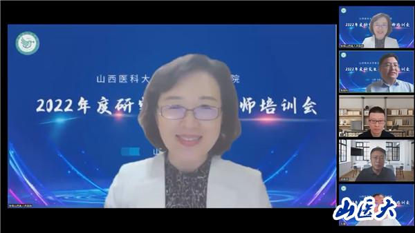 为深入学习贯彻全国研究生教育会议精神和研究生导师立德树人职责,进一步加强研究生导师队伍建设,增强研究生导师教书育人的责任感与使命感,9月17日,第五临床医学院(山西省人民医院)举办了2022年度研究生指导教师培训会。会议邀请了校党委常委、副校长成晓龙,研究生学院副院长高泉、招生办公室主任王疆,学位办公室石璟主任作专题报告。学院博士硕士研究生导师、各教研室主任、副主任以及后备导师等共200余人参加了培训。会议采用线上方式进行,副院长张锦出席会议,会议由科教处副处长张刚利主持。