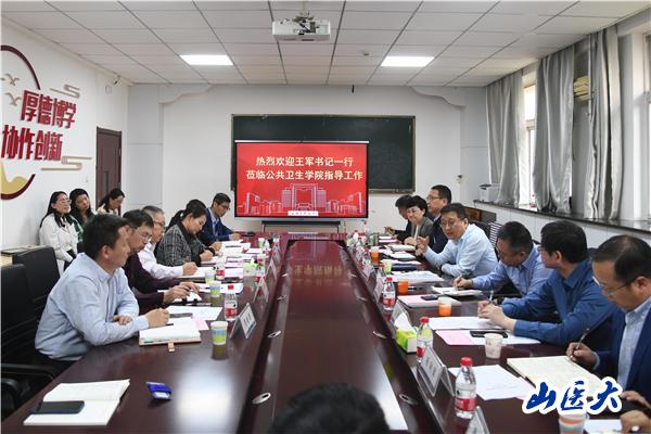 4月18日下午,学校主题教育领导小组组长、校党委书记王军,学校主题教育领导小组成员、校党委常委、副校长成晓龙与学校相关部门负责人,深入公共卫生学院专题调研国家高水平公共卫生学院建设工作。调研中,王军一行认真听取了高水平公共卫生学院建设情况,实地走访了教学科研场所,与公共卫生学院领导班子、教师代表就加快推进高水平公共卫生学院建设进行了充分交流讨论,并从加强顶层设计、重视动态定位、坚持问题导向、抓牢发展机遇和平台优势等多个方面给予了具体指导,全力推动高水平公卫学院建设任务落到实处、取得实效。