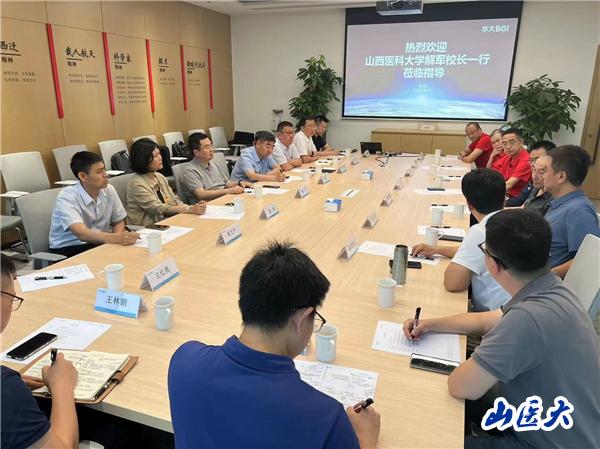 为探索人才培养新范式,拓宽校企合作新渠道,破解教育,科技,人才一体化命题,6月7日-8日,校长解军一行赴华大集团专题调研学习。华大集团董事长、联合创始人汪建,执行董事、首席运营官、国内区域规划与发展中心主任路军,执行董事、华大生命科学研究院院长徐讯,执行董事、华大智造首席执行官牟峰,执行董事、首席执行官赵立见,高级副总裁、首席医事官许四虎等华大集团高层领导热情接待了解军一行。学校办公室、科学技术部、科技产业开发中心、基础医学院、公共卫生学院、特种医学院,医学科学院等部门负责同志陪同。