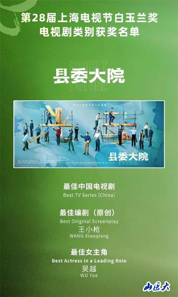 6月23日晚,第28届上海电视节“白玉兰绽放”颁奖典礼在上海举行。由我校校友、著名青年影视剧作家王小枪担任编剧的《县委大院》获白玉兰最佳中国电视剧奖、最佳女主角、最佳编剧(原创)三项大奖,王小枪联合编剧的《功勋》获得评委会大奖。