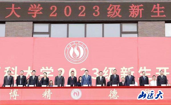 9月10日上午,我校2023级新生开学典礼在中都校区体育场举行。5400余名2023级本科生和研究生共同开启在山医的学业新里程。校党委书记王军,校长解军,校党委副书记王宏伟、彭月兰,校党委常委、纪委书记韩树彪,校党委常委、副校长刘春、赵文军、成晓龙、焦向英,第一临床医学院(第一医院)党委书记徐钧,第二临床医学院(第二医院)党委书记李保、院长赵斌出席开学典礼。学校各相关部门、各院系负责人、思想政治辅导员、全体2023级新生及部分新生家长参加了开学典礼。