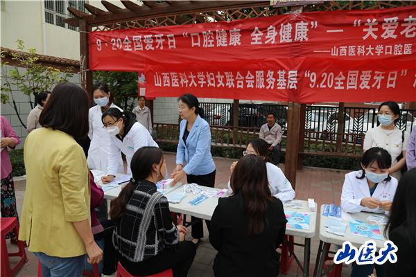 9月20日,我校妇女联合会、口腔医(学)院的部分人员赴太原市迎泽区老军营社区开展了服务基层“9•20全国爱牙日”义诊活动。校党委副书记、校妇联主席彭月兰参加了活动。