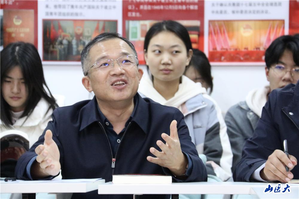 分享会开始,焦向英向同学们表达了亲切问候。他结合《习近平与大学生朋友们》第二卷一书的主旨内容,与大家分享了学习体会,勉励大家多读书读好书,志存高远、脚踏实地,把个人理想与社会理想紧密结合起来,勇敢肩负起时代赋予的重任,与祖国共奋进、与时代共发展、与人民共命运,勇做走在时代前列的奋进者。