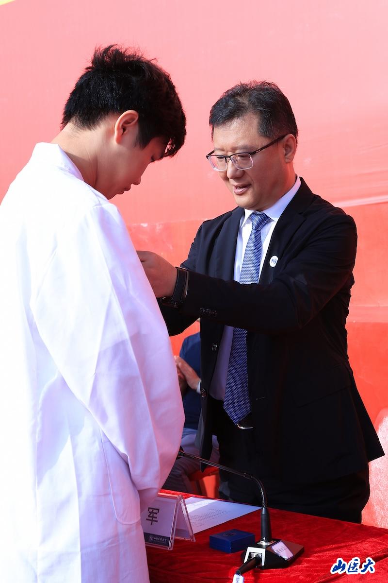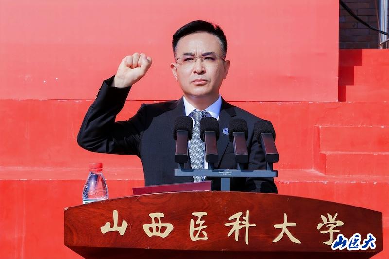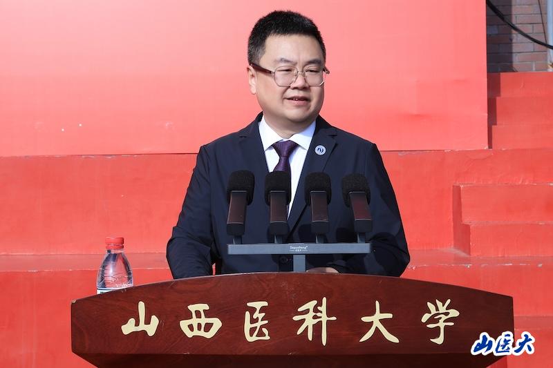 创新创业学院主持工作副院长王兴作为教师代表发言,希望同学们能够在实践中检验真知、提升本领,与人相处中常怀感恩与宽容,在科研实践中敢于提问,在生活中珍视身心健康,严于律己,在未来求学和从医生涯中,不仅学有所成,更能德有所立,让青春在山医闪耀!