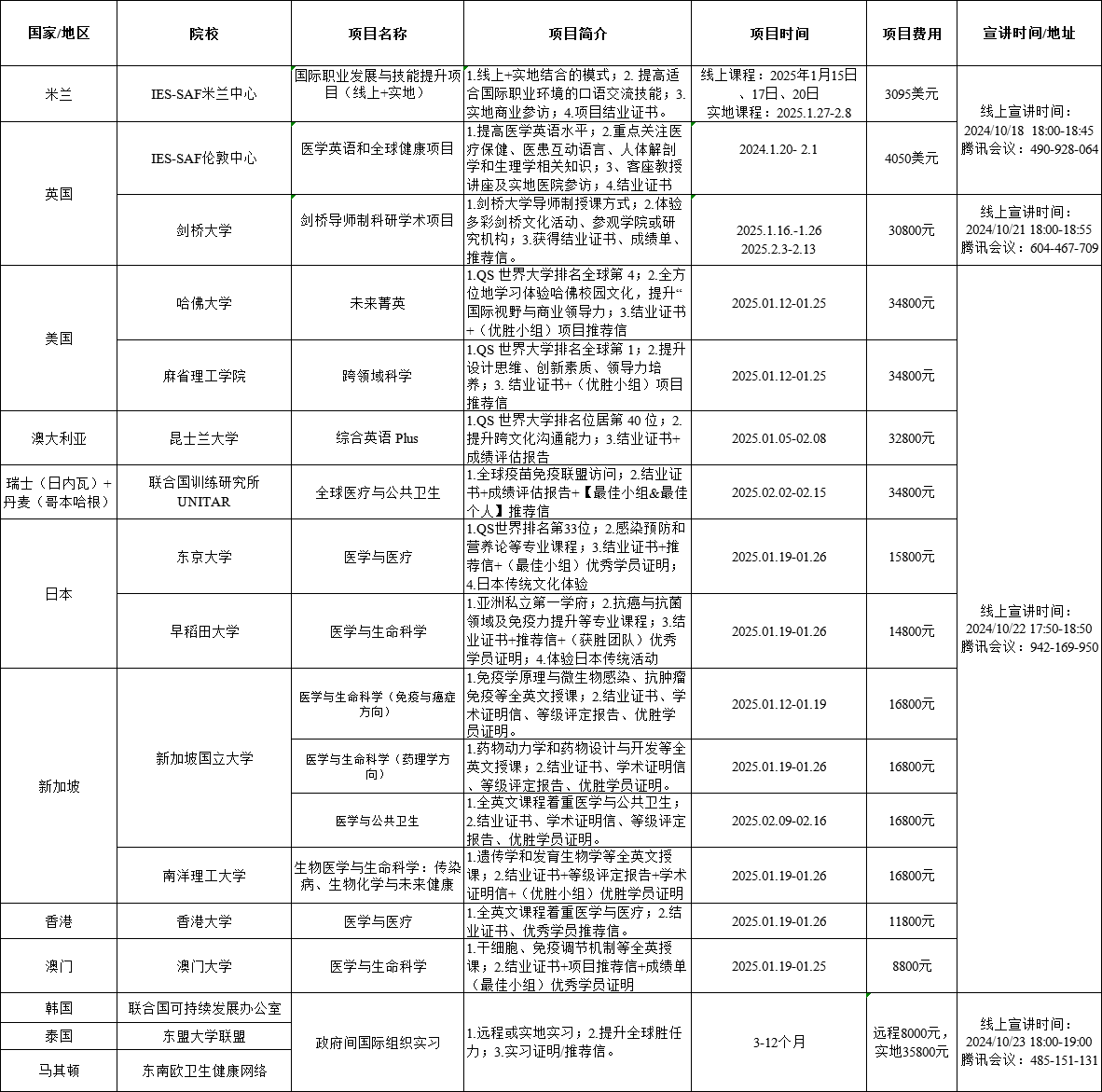 为深入推进人才培养模式改革,加快培养国际化高素质人才,根据学校相关政策,现将报名2025年寒假出国(境)短期线下访学项目通知如下: