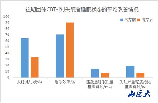 在此基础上,团体形式的CBT-I可以使来访者真切地感受到“失眠问题是普遍存在的”,在团体中的经验分享可以使来访者产生更多的自我觉察,团体凝聚力、团体利他性、社会助长性、模仿学习等都会增强来访者的治疗依从性,促进来访者的睡眠状态改善。目前已完成治疗的团体成员在睡眠效率、入睡时间、睡眠质量等方面均有明显改善,且在治疗依从性等方面优于个体治疗。经过治疗,部分来访者摆脱了“只有服用助眠药才能入睡”的困扰。