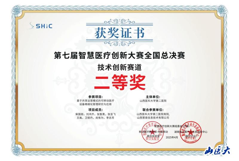 4月23日至25日,首届医疗行业数字生态创新大会暨第七届智慧医疗创新大赛全国总决赛在湖南长沙圆满落幕。全国26个赛区、769个医疗创新项目激烈角逐,我校第二医院信息运维中心凭借“基于共享运营模式的可移动医疗设备精细化管理研究”项目,以山西赛区第一名的成绩晋级全国总决赛,并在225个入围项目中脱颖而出,荣获全国二等奖。同时,第二医院另两项创新成果“基于信创中台互联网+应用全生命周期管理”和“一站式远程安全接入与运维管理”斩获大赛优秀奖,彰显了我校第二医院在医疗数字化转型中的实力。
