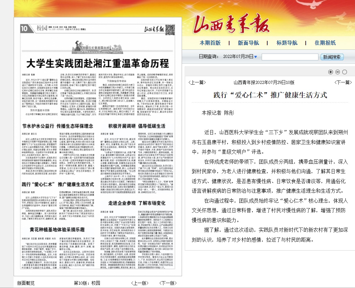 山西青年报︱践行“爱心仁术”推广健康生活方式