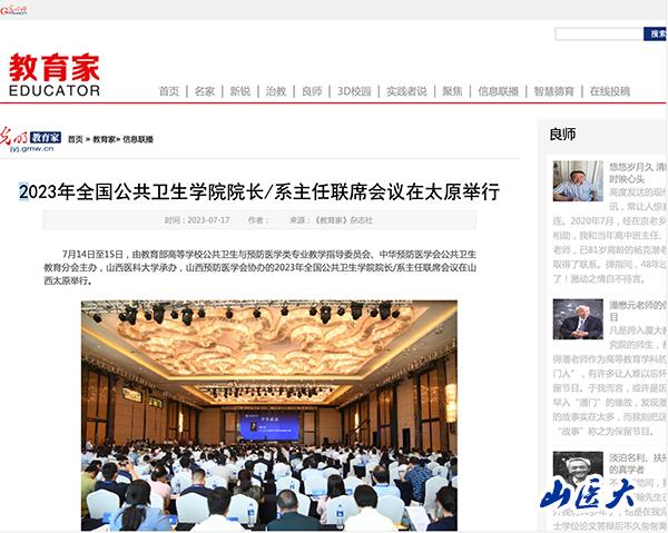 光明网 | 2023年全国公共卫生学院院长/系主任联席会议在太原举行