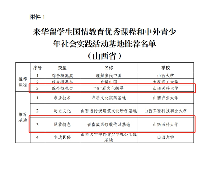 为深入贯彻习近平总书记关于教育的重要论述精神,加快落实中央教育工作领导小组秘书组印发的《加强来华留学管理工作方案》,受教育部国际合作与交流司委托,中国教育国际交流协会面向全国高校开展2024年度来华留学生中国国情教育优秀课程和中外青少年社会实践活动基地征集工作,最终共确立111门课程和115个基地。我校申报的“‘晋’彩文化探寻”国情教育优秀课程和“晋南威风锣鼓传习基地”社会实践活动基地双双获批立项。
