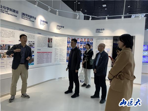 在天津大学医学部,徐瑞副院长带领参观天津大学“兴医之路”主题教育馆,办公室主任赵晶晶详细讲解了智能医学工程专业在学科建设、教学科研平台、科研布局、师资荣誉、国际合作等方面取得的优异成果。随后,进一步参观了该专业的实验室。