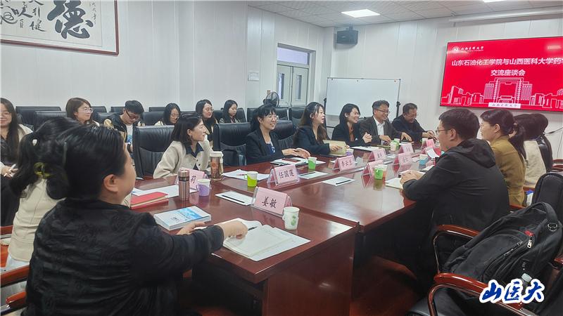 药学院党委书记李薇对殷丽一行表示热烈欢迎,她介绍了学校的悠久历史、办学特色以及近年来在医学教育和科研领域取得的成就。药学院副院长梁泰刚介绍了药学院的历史沿革和在学科发展、科学研究、人才培养等方面取得的成绩。殷丽介绍了山东石油化工学院生物医药与护理学院的基本情况和来访的目的,希望双方在教育教学、科学研究等方面加强合作交流,密切联系,经验互鉴。与会人员围绕人才培养、学生就业、有组织的科研等进行了热烈交流探讨。